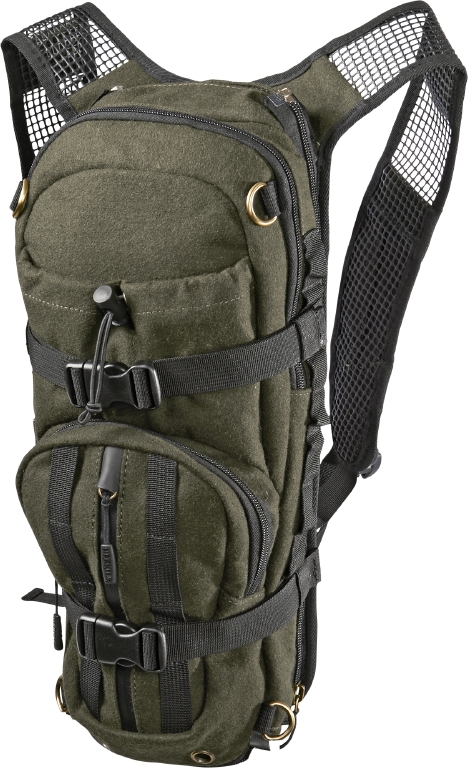 • lovecký batoh z česaného materiálu • materiál 50% vlna, 50% polyester • součástí je odnímatelné pouzdro na zbraň • oboustranná pláštěnka přes batoh ( zelená/ bílá ) • kapacita 12 litrů • rozměry 44 x 21 x 13 cm