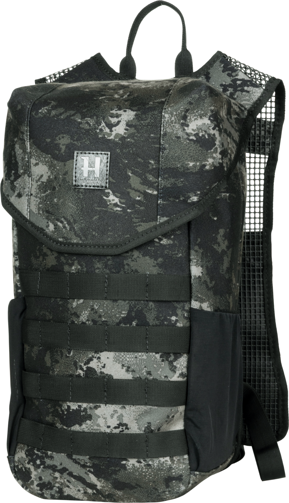 • lovecký batoh • kamufláž AXIS MSP BLACK • materiál: 100% polyester • tichý materiál • ramenní popruhy z gumové síťoviny • popruhy přes hrudník • popruhy systému MOLLE - připevnění vnějších kapes • 1 velká kapsa na zip • kapsy po stranách • nouzová píšťalka - zabudována do zacvakávacího systému ramenních popruhů • objem: 12 litrů • rozměry: 26cm (D) * 17,5cm (Š) * 47cm (V)
